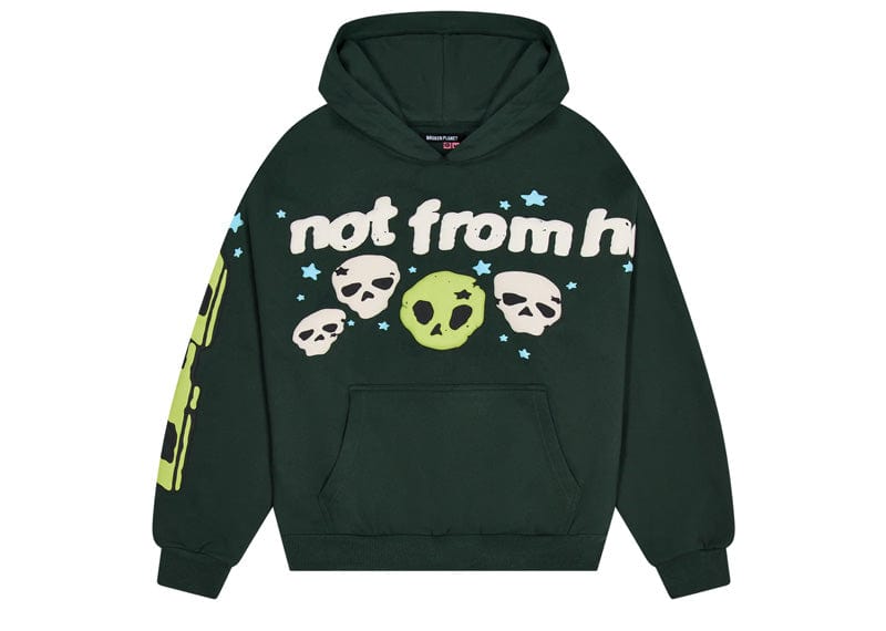 Elevate your streetwear with the Broken Planet Market Not From Here Hoodie in Dark Green. Crafted for comfort and style, this hoodie features a unique design that sets you apart from the ordinary. Its rich dark green hue complements any outfit, while the premium fabric ensures lasting warmth and softness. Perfect for making a statement, this hoodie blends standout style with everyday comfort effortlessly. Experience a look that’s truly not from here.