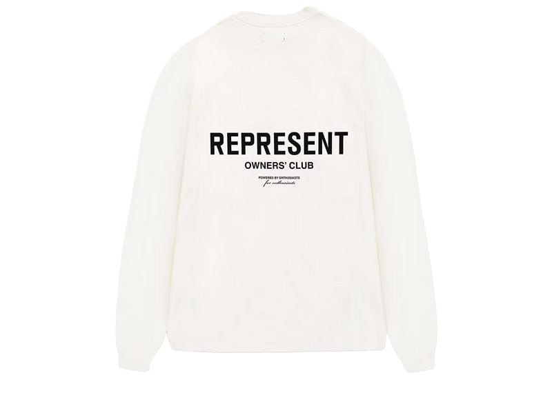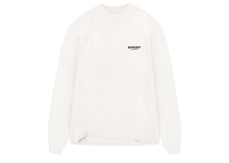 Introducing the Represent Owners’ Club Long Sleeve T-Shirt in Flat White, a slightly oversized long sleeve tee crafted from luxury medium weight cotton. This t-shirt has a ribbed crewneck and ribbed cuffs, Represent metal bar to the hem and Owners’ Club branding to the front and back.