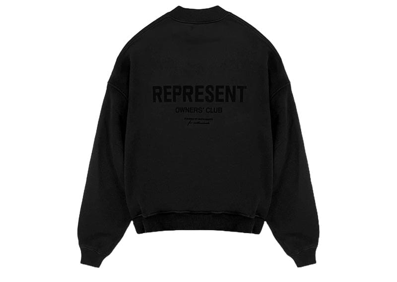 Introducing the Represent Owners' Club Flocking Sweater in Black. A slightly oversized black sweater, crafted from a heavy weight jersey cotton. The sweater is super soft, pre-shrunk and piece dyed for the ultimate jersey. It features a ribbed hem and cuffs for the perfect fit.