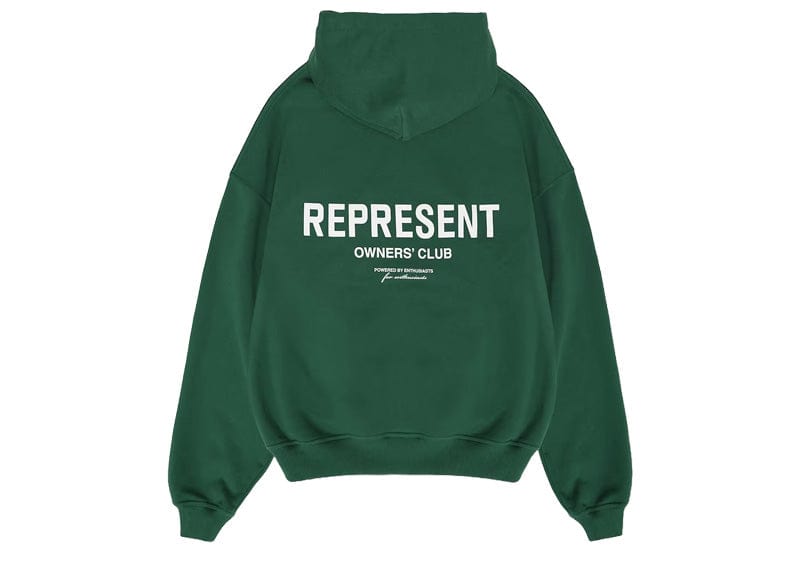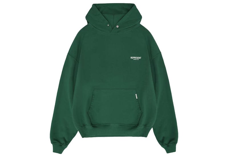 Introducing the Represent Owner's Club Hoodie in Racing Green. Made with heavy weight jersey cotton, this super soft and pre-shrunk hoodie features ribbed hems and cuffs for a comfortable fit. Complete with a Cobrax popper to the hood and Represent Owners' Club branding, this hoodie is perfect for any racing enthusiast.
