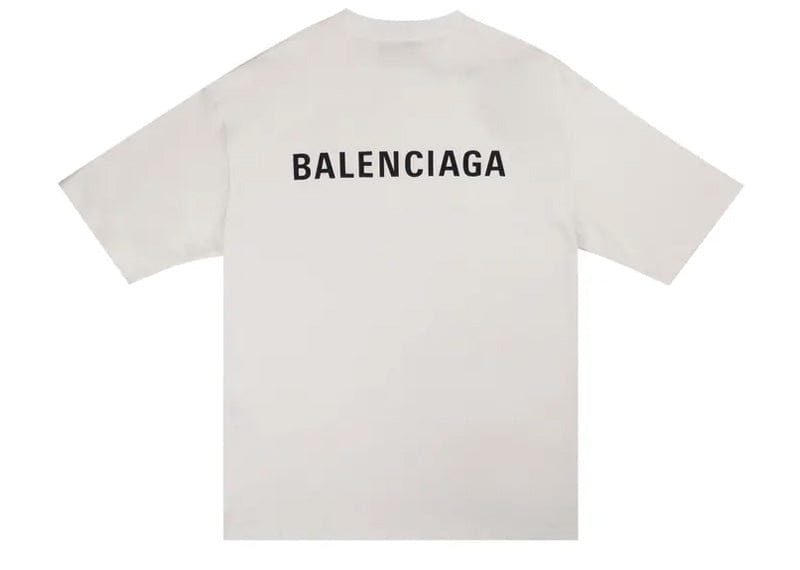 Embrace understated luxury with this Balenciaga Logo Tee in crisp white. The oversized silhouette and bold printed logo deliver contemporary designer appeal, while the 100% cotton construction ensures breathable comfort for everyday wear. Finished with a ribbed crew neck and short sleeves, this piece effortlessly elevates casual styling. A wardrobe essential for those who appreciate refined minimalism with a statement edge.