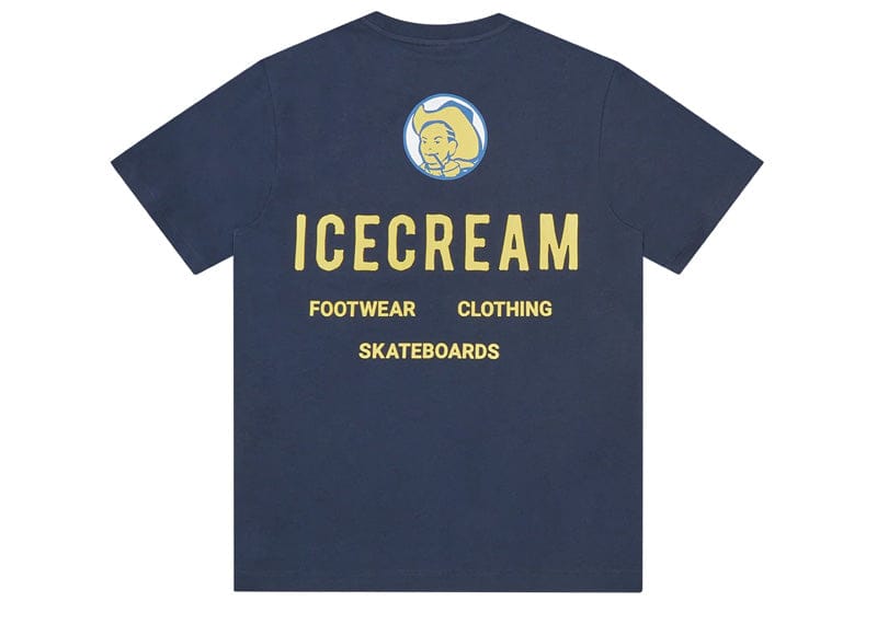 Embrace the bold aesthetic of ICECREAM's Spring '25 collection with this striking Cowboy T-shirt. Featuring an iconic cowboy cameo rendered in crisp detail across the chest and back, paired with signature ICECREAM branding, this navy piece merges streetwear attitude with refined craftsmanship. A versatile essential that elevates casual wardrobes with designer edge and contemporary flair.