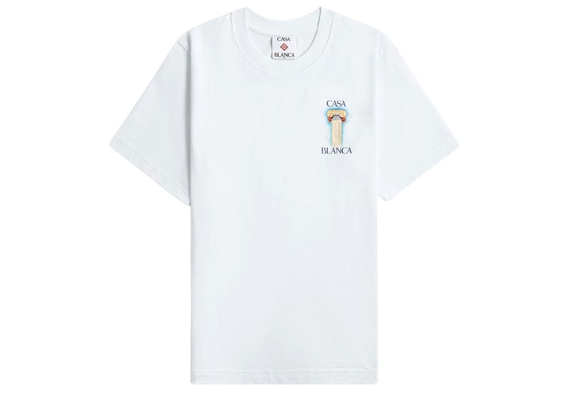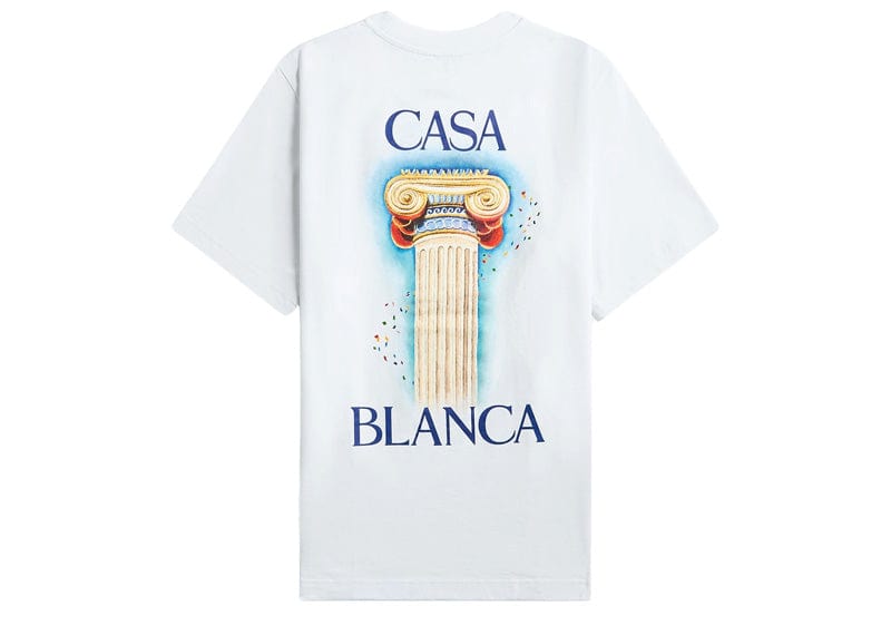 Experience effortless style with the Casablanca La Colomne T-shirt in white. Crafted from soft cotton fabric, it offers breathable comfort for all-day wear. The ribbed crewneck ensures a snug fit, while the distinctive Casablanca logo paired with the La Colomne graphic print on both chest and back adds a bold, artistic touch to your wardrobe. Perfect for those who appreciate unique design and quality, this T-shirt elevates casual looks with a statement finish.