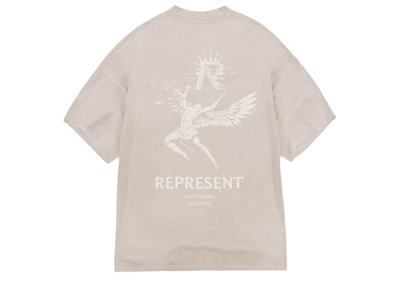 Introducing the Icarus T-Shirt in Taupe, a t-shirt crafted from luxury medium weight cotton, with a slightly oversized fit. It features our Icarus graphic to the front and back and is finished with our Represent metal bar to the hem.Inspired by Greek Mythology, the graphic to this t-shirt features Greek Hero, Icarus; the harbinger of boundless dreams. Icarus stands as a symbol of balance between flying too high and soaring too low; a metaphor for the endless pursuit of navigating the trials of life itself.