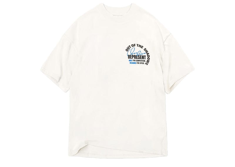 The Represent Out of The Shadows Tee in Flat White features a modern boxy fit for effortless style and comfort. It showcases a distinctive Represent logo metal bar at the hem and a bold "Out Of The Shadows" graphic rendered in high build print, adding texture and visual impact. This tee combines unique design elements with quality craftsmanship, making it a standout piece for your casual wardrobe.